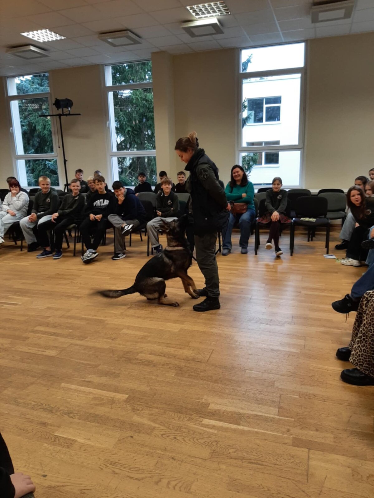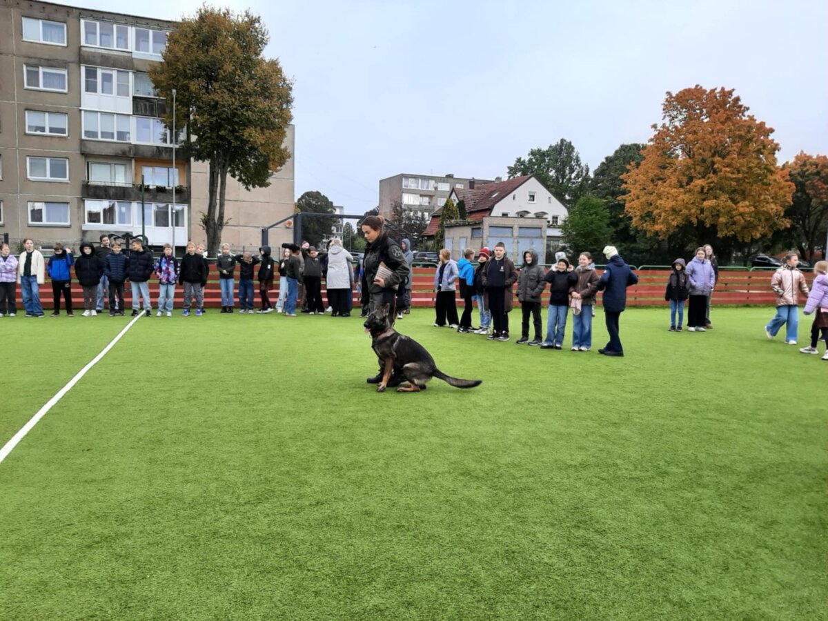Įdomiausia išvykos dalimi tapo kinologo dresuoto tarnybinio šuns parodomoji programa. Ketvirtokai šiuo pasirodymu buvo labai sužavėti, tarpusavyje aptarinėjo ką pamatė ir sužinojo.
