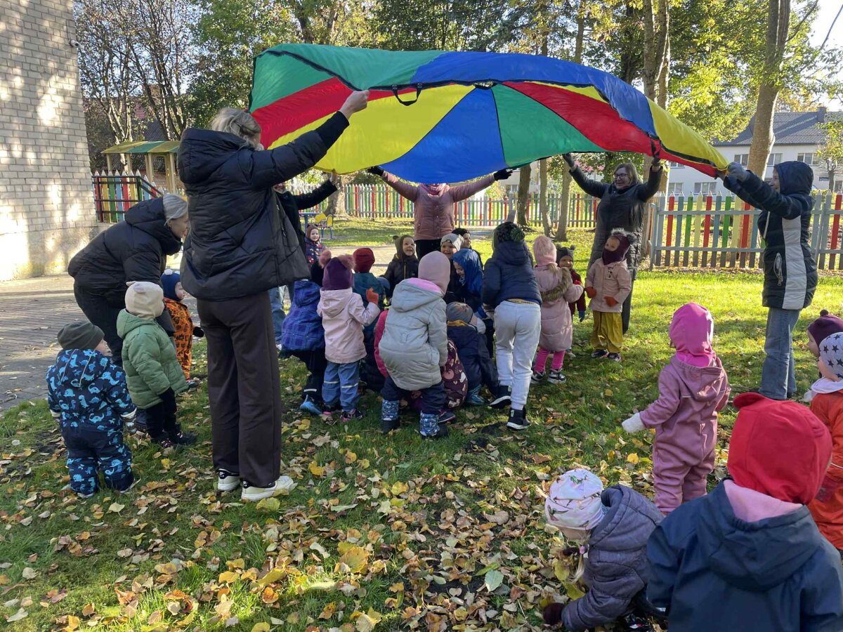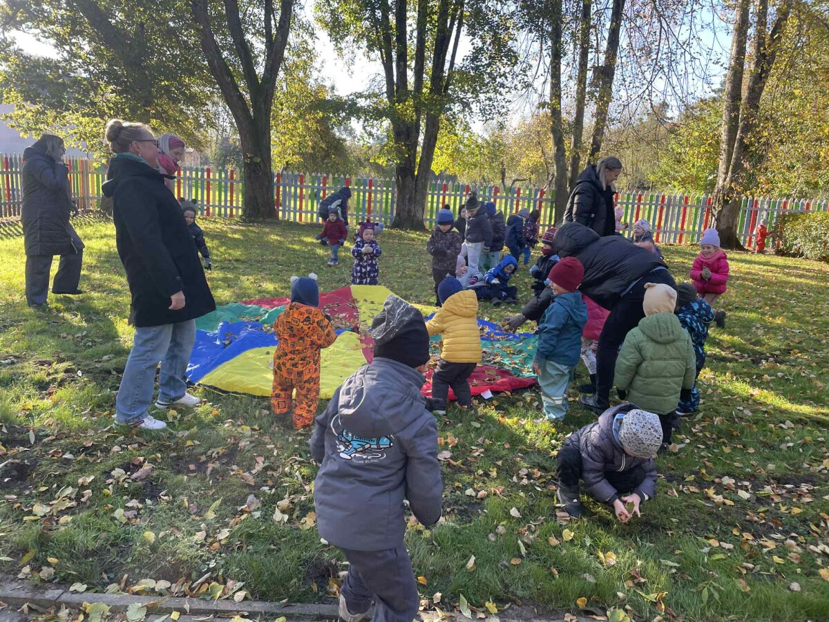 Spalio 21 dieną IUG ir PUG ugdytiniai dalyvavo popietėje ,,Rudenėlio žaismas“. Vaikai pasikeisdami vardino rudens požymius, pasakojo kas auga jų soduose ir daržuose. Padedami meninio ugdymo mokytojų Laimos Bušininkienės ir Valdo Neimanto, dainavo daineles apie rudenį, žaidė muzikinius žaidimus.Visi drauge parašiutu skraidino rudeninius lapus. Kiekvienas galėjo išbandyti save dalyvaudamas estafetėje ,,Sudėk – surink obuoliukus“, sukdamas virvutę su kaštonais ar rūšiuodamas kamuoliukus pagal spalvą (užduotis paruošė ikimokyklinio ugdymo mokytojos Daiva Kaunienė, Laima Bušininkienė, Inga Žukauskienė). . Smagu buvo pabūti kartu ir pasidžiaugti auksaspalviu rudenėliu.