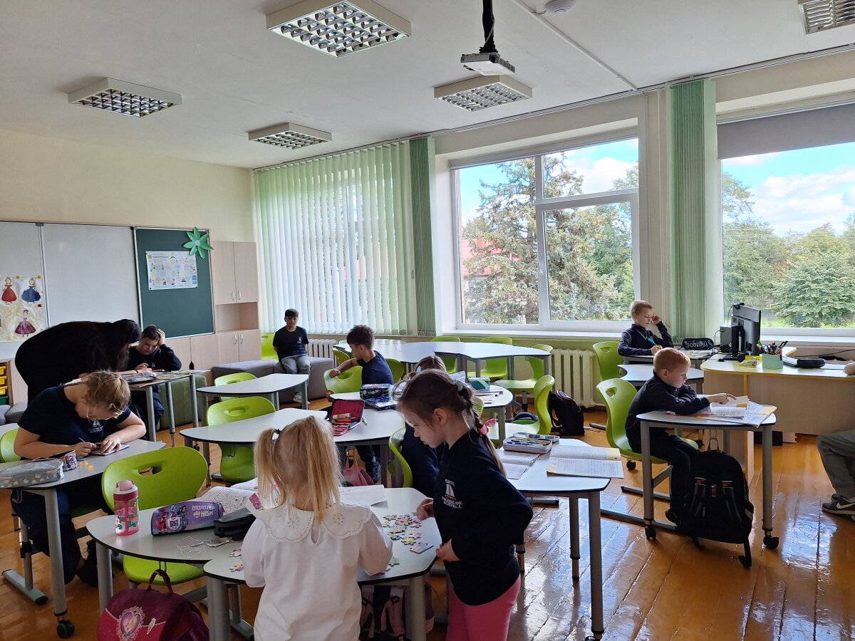 Vyresniųjų klasių mokiniai mokosi savarankiškai, o atlikę namų darbų užduotis – skaito knygeles, modeliuoja ar konstruoja.