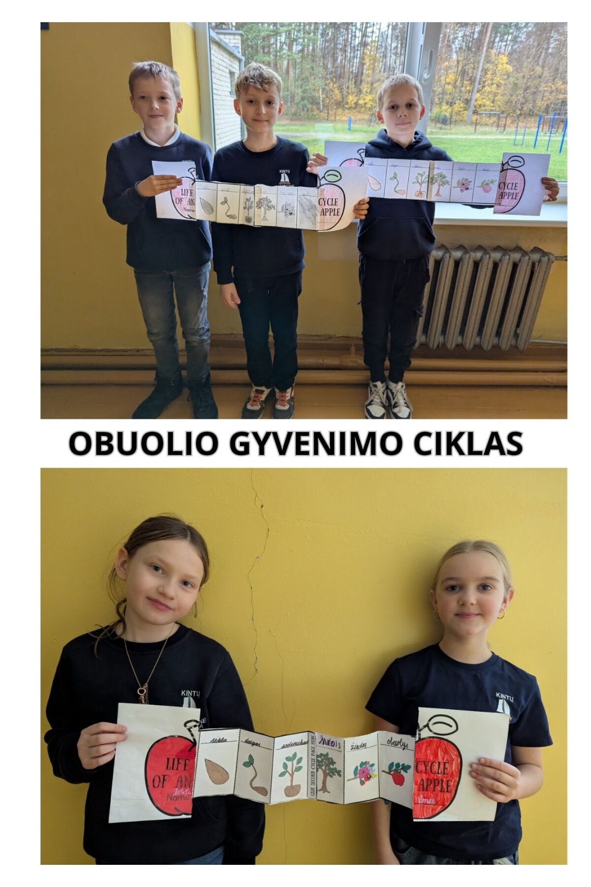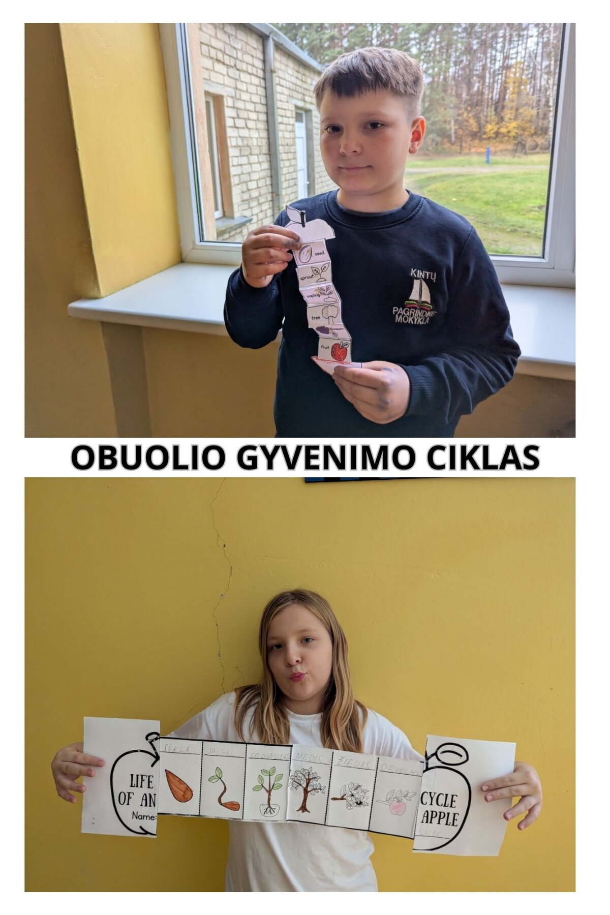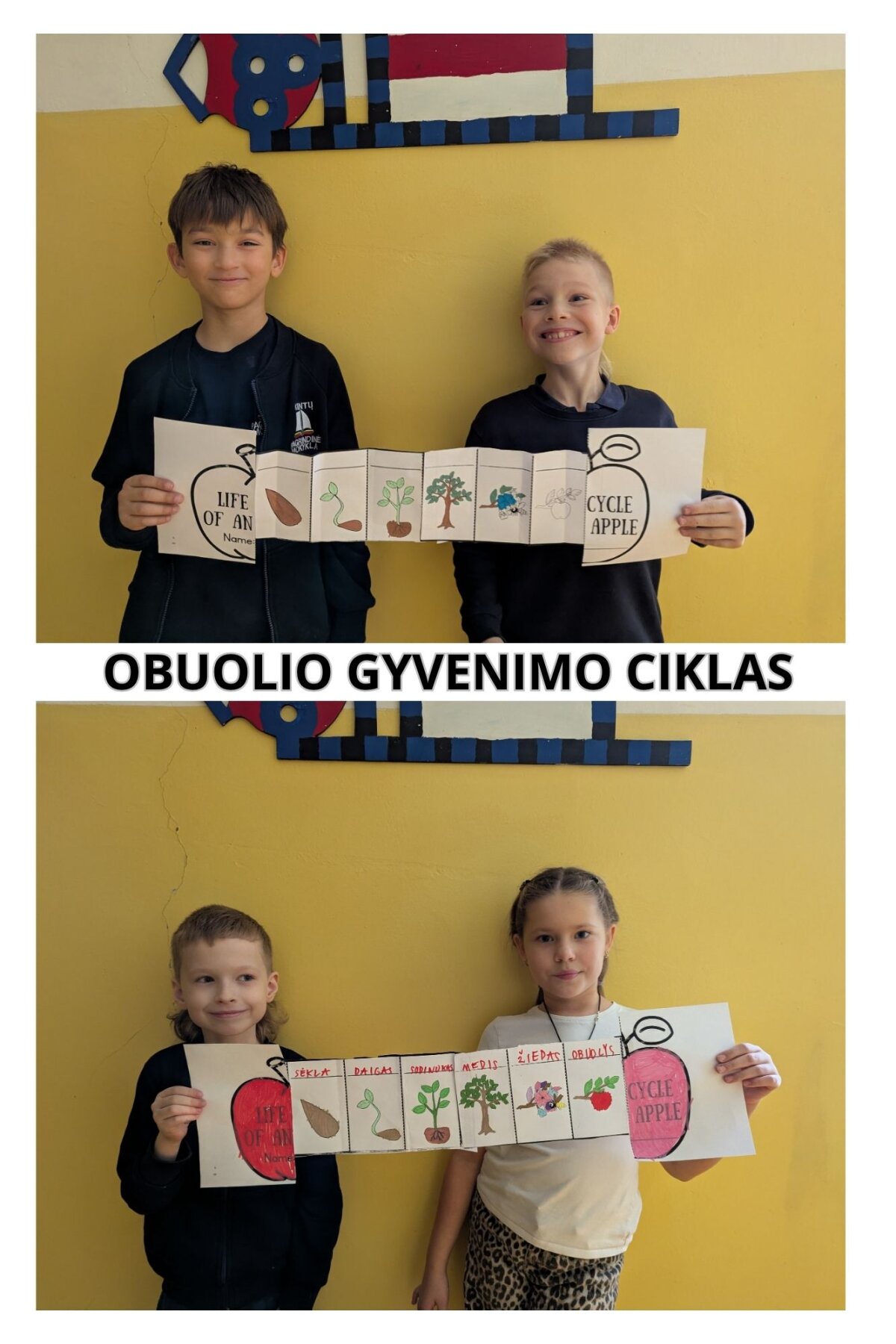 3–4 klasės mokiniai „Obuolių pyrago“ praktinės savaitės metu tyrinėjo obuolius ir atliko gamtos eksperimentus. Užsiėmimo metu vaikai nagrinėjo vaisiaus sandarą ir kūrė obuolio gyvenimo ciklo schemą — nuo sėklos iki prinokusio vaisiaus. Veikla padėjo mokiniams geriau suprasti gamtos procesus ir ugdė jų smalsumą.