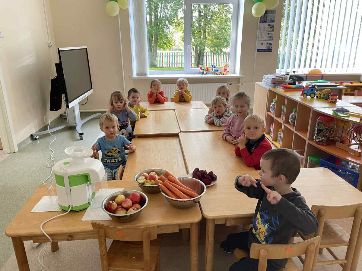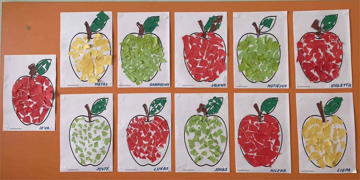 „Saulučių“ grupės ugdytiniai dalyvavo veiklose, kuriose kalbėta apie įvairius vaisius, aptarė obuolio formą, spalvas, ragavo, spaudė sultis, atliko meninius darbelius.