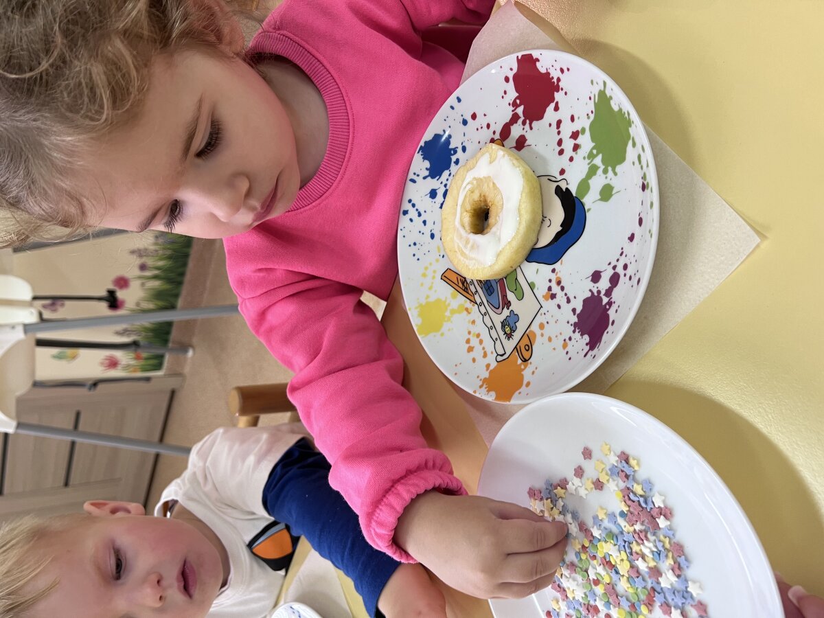 Ikimokyklinio ugdymo grupė gamino sveikuoliškas obuolių spurgytes. Mažieji „zuikučiai“ tapo virėjais ir su gamino pyragėlius, barstė sezamų sėklomis. Iškepti pyragėliai buvo gardūs, o jų kvapas pripildė visą grupę šilumos ir jaukumo.