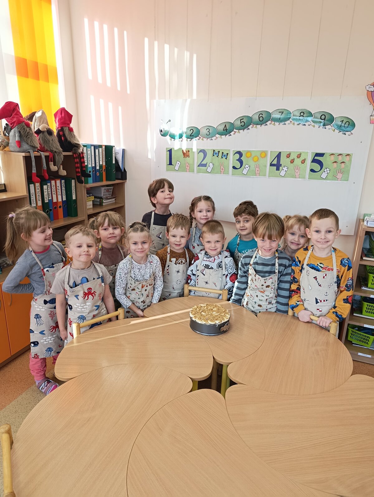 Antrokai kepė sausainių pyragą. Vieni su kitais dalinosi padarytais pyragais, kitus nešė namo, pavaišinti savo tėvelius.