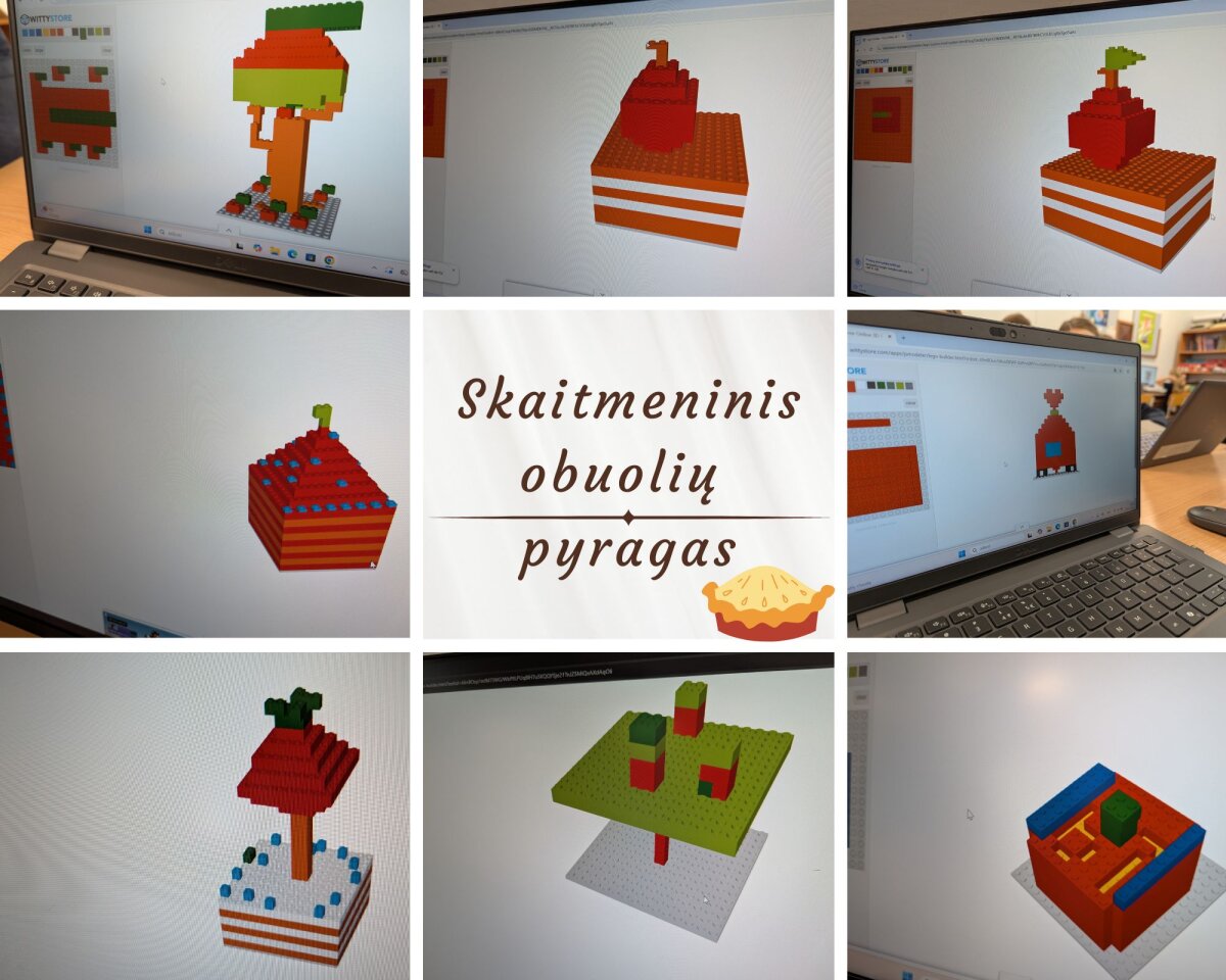 Per Algoritmų ir Konstrukcijų būrelį 1–4 klasių mokiniai kūrė skaitmeninį obuolių pyragą LEGO konstruktoriaus platformoje. Vaikai lavino kūrybiškumą, erdvinį mąstymą ir dirbo su virtualiomis konstrukcijomis, sukurdami spalvingus ir išraiškingus pyrago modelius.