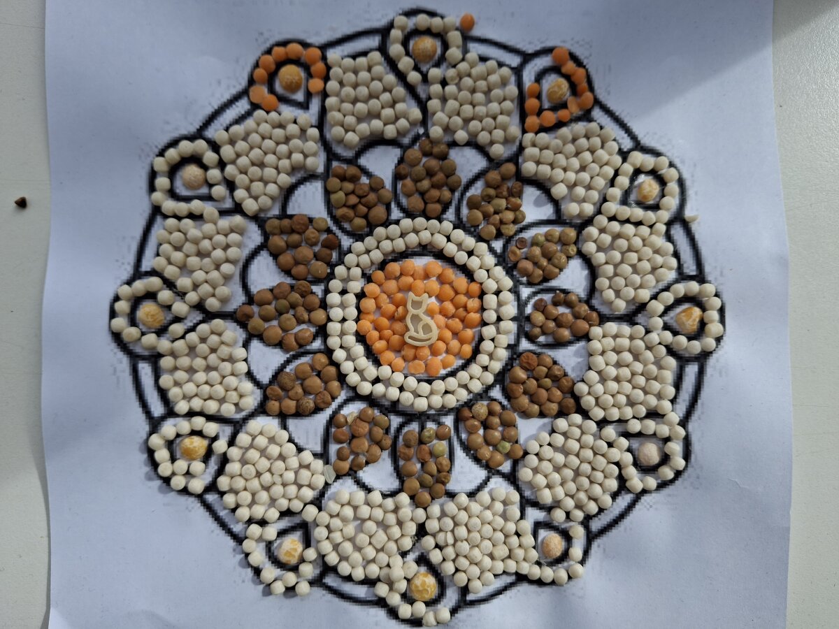Netradicinės veiklos metu mokiniai susipažino su mandalos sąvoka, jos raštais ir simetrijos principais. Lavindami smulkiąją motoriką ir estetinį suvokimą bei plėtodami žodyną ir bendradarbiavimo įgūdžius, mokiniai kūrė mandalas iš įvairių sėklų.