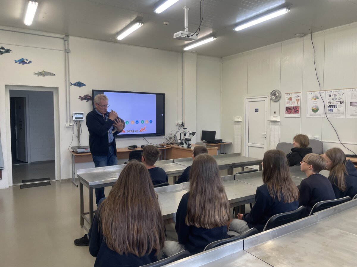 Mus pasitiko ir edukaciją vedė centro vadovas Jonas Dyglys. Mokiniai buvo suskirstyti į komandas, kurios varžėsi žaidime „Akvažinius“, atlikdami teorines ir įvairias praktines užduotis. Septintokai ugdėsi pažinimo, komunikavimo kompetencijas: mokėsi komandinio darbo, kruopštumo, atidumo, jautrumo gyvūnui, sužinojo naujų faktų apie žuvis, jų gyvenimo ypatumus.