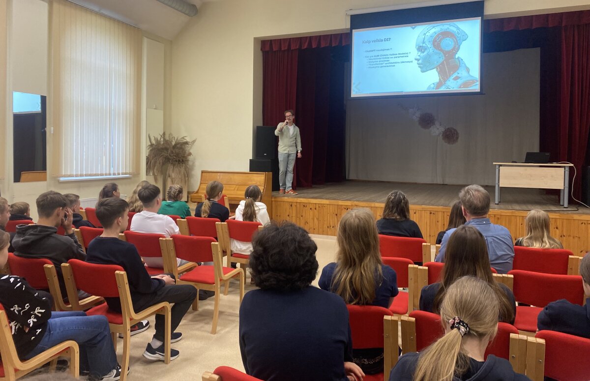 Baigiantis mokslo metams, birželio 11 dieną, Kintų daugiafunkciniame centre vyko netradicinė 6–10 klasių istorijos pamoka, kurios metu mokiniai turėjo unikalią galimybę ne tik pagilinti žinias apie dirbtinį intelektą (DI), bet ir pabendrauti su žmogumi, tiesiogiai prisidėjusiu prie inovatyvaus produkto kūrimo.