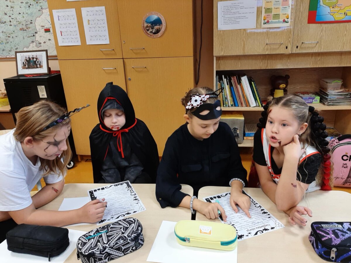 Pamokos metu, pasipuošę Vaiduoklių šventės personažų kostiumais, mokiniai atliko įvairias veiklas, susijusias su šia švente. Mokiniai sužinojo, kad Lietuvoje minimos Šiurpės-tai šiuolaikinis vaikų tautosakos žanras. Šiurpių istorijos dažniausiai turi netikėtą, linksmą ir laimingą pabaigą. Šiurpėms artimi ir vaikų burtai.