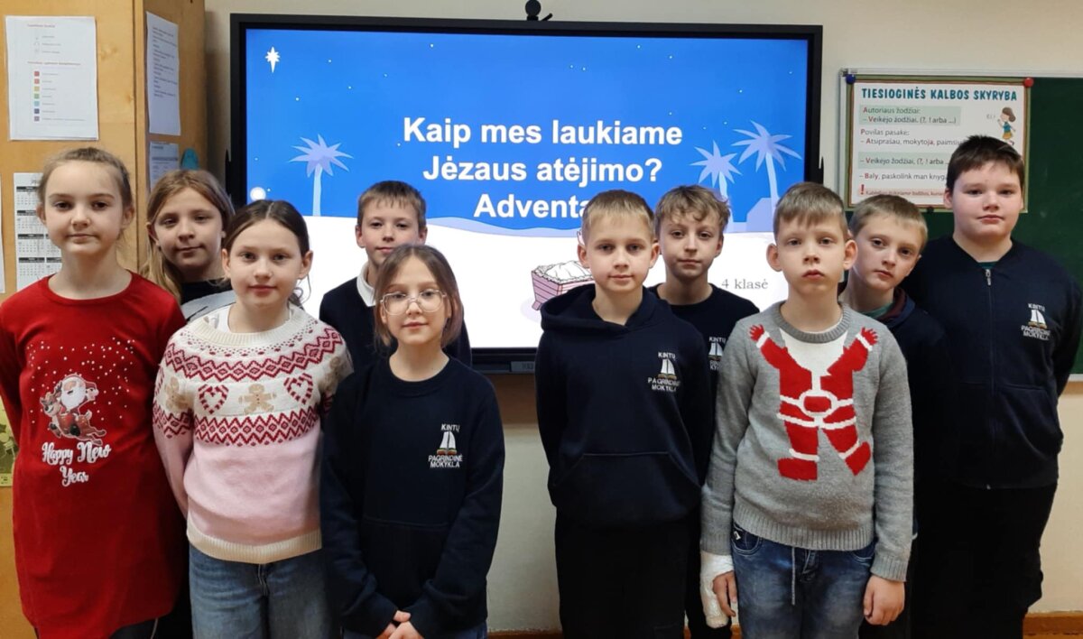 Gruodžio 1 dieną Kintų pagrindinės mokyklos 4 klasės mokiniams vyko integruota tikybos, lietuvių kalbos pamoka „Adventas“. Pamokos metu mokytojos mokiniams padėjo išsiaiškinti, kas yra adventas, suprasti kaip atrodo adventinis vainikas ir kam jis yra skirtas, mokiniai susipažino su šio laikotarpio prasme, reikšme, jo simboliais.