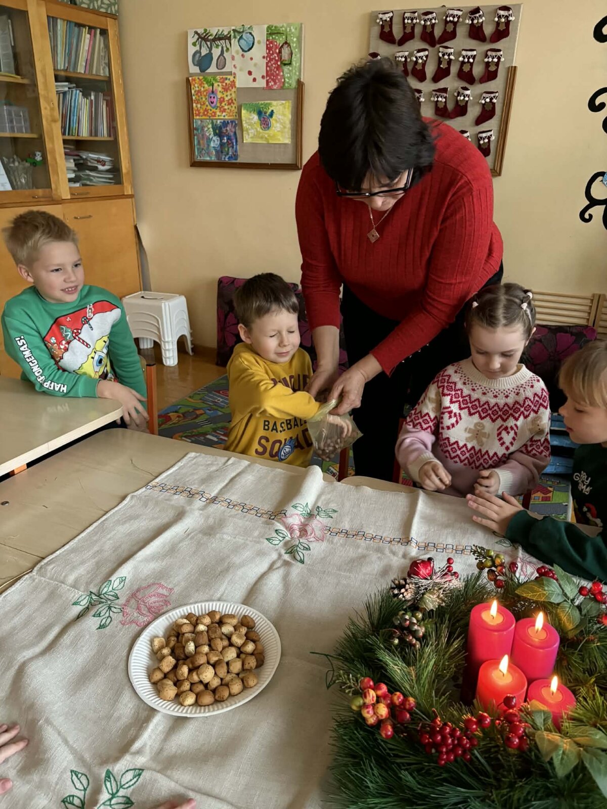 Pamokos pabaigoje visi sugiedojo giesmę ,,Tyli naktis".