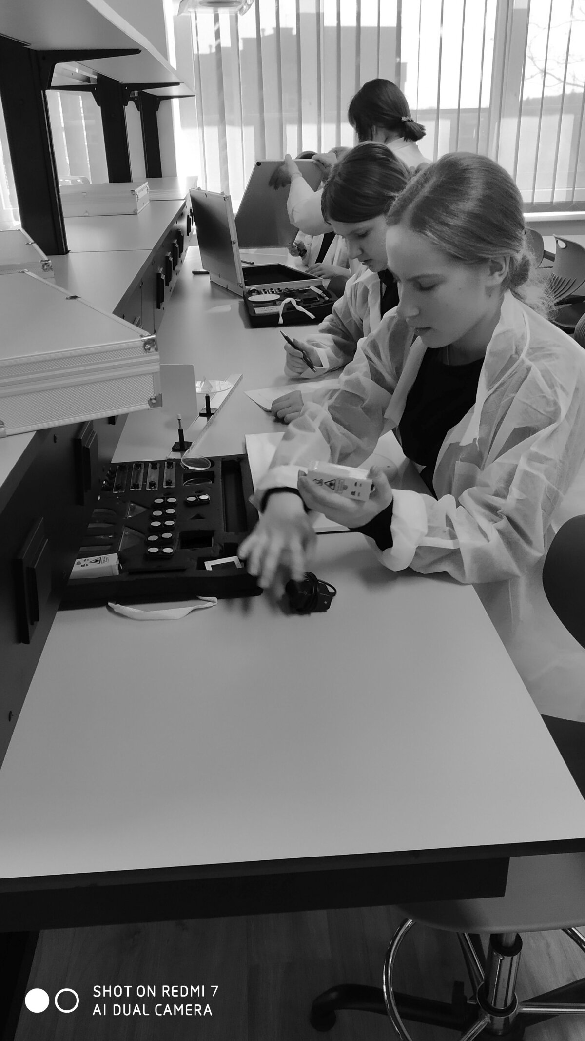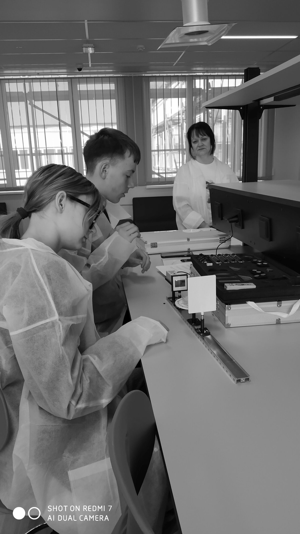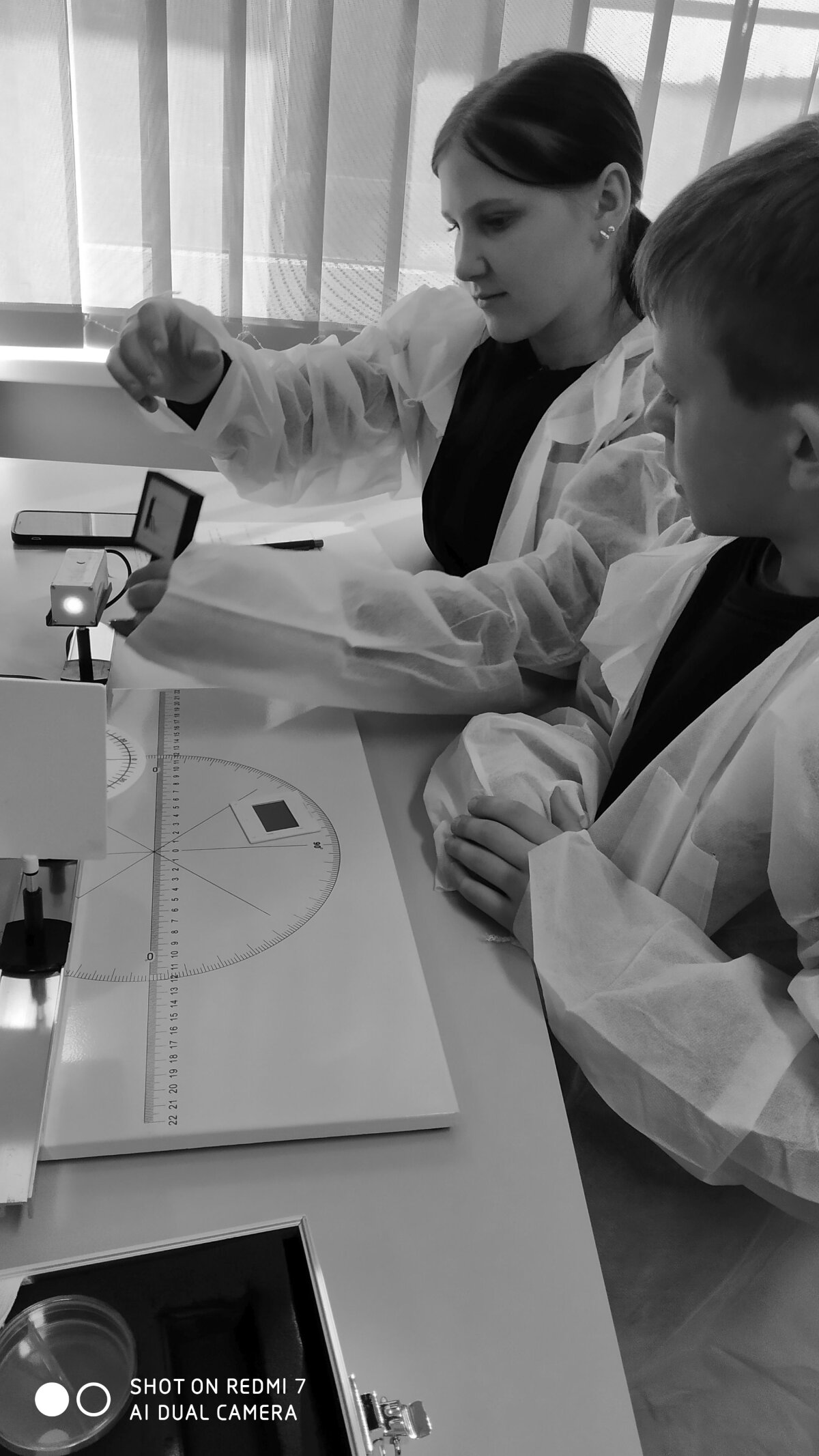 Fizikos laboratorijoje atliko tyrimą ,,Šviesos spalvos“, naudodamiesi mokinio veiklos lapo aprašu bei optikos rinkiniu praktiškai nustatė, kad matomoji šviesa yra sudėtinė, sudaryta iš įvairių spalvų mišinio ir įsitikino, kad skirtingų spalvų spinduliai lūžta nevienodai.