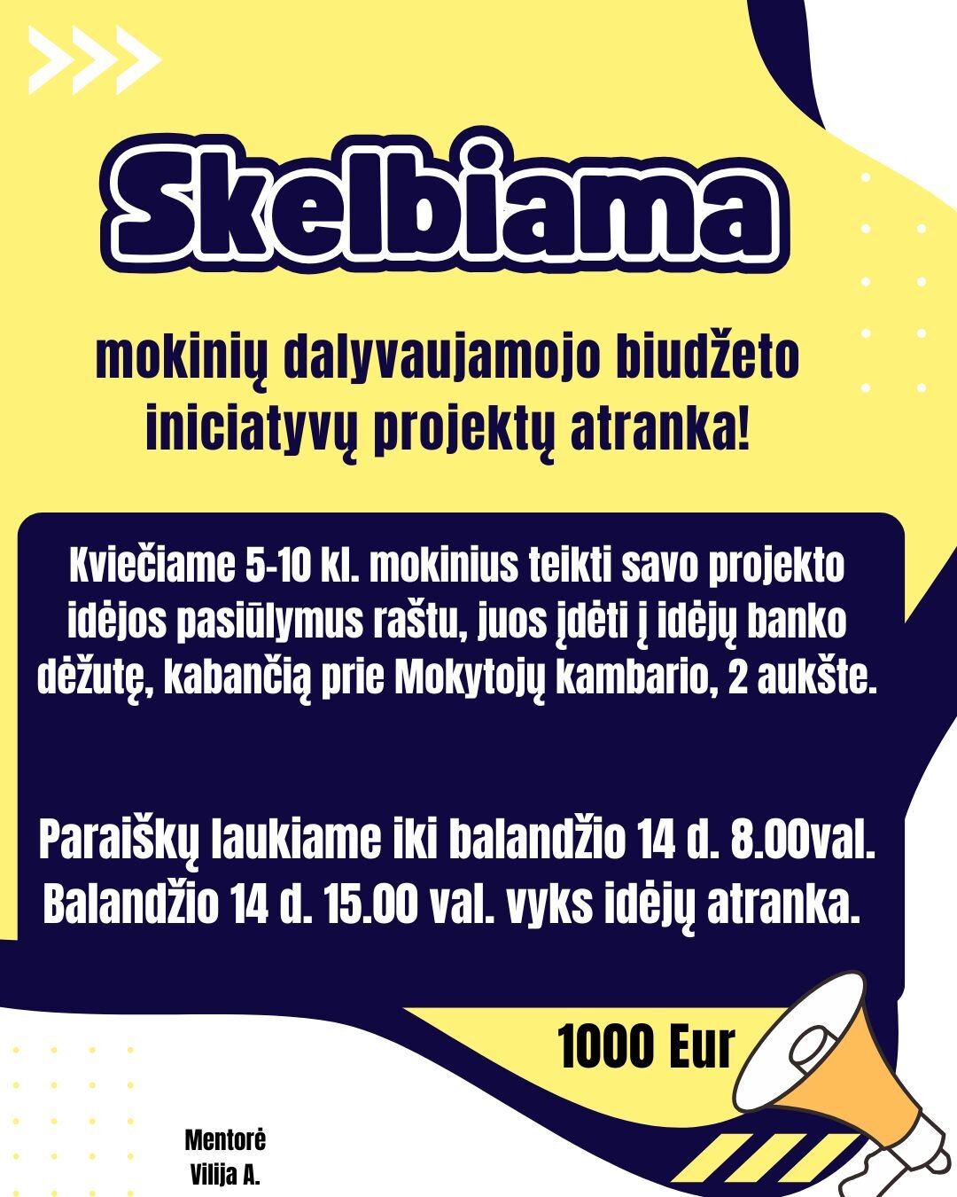 Skelbiama mokinių dalyvaujamojo biudžeto iniciatyvų projektų atranka!