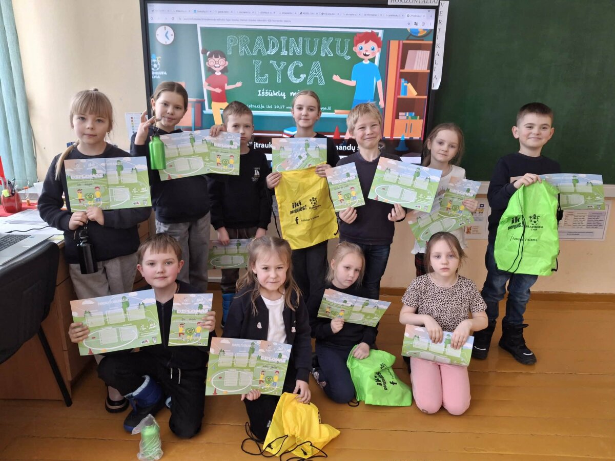 Šių mokslo metų lapkričio – vasario mėnesiais pirmos ir trečios klasės mokiniai dalyvavo Lietuvos moksleivių futbolo projekte ,,Pradinukų lyga – iššūkio mėnuo“, kurį vykdo Lietuvos futbolo federacija (LFF), Lietuvos masinio futbolo asociacija (MaFA).